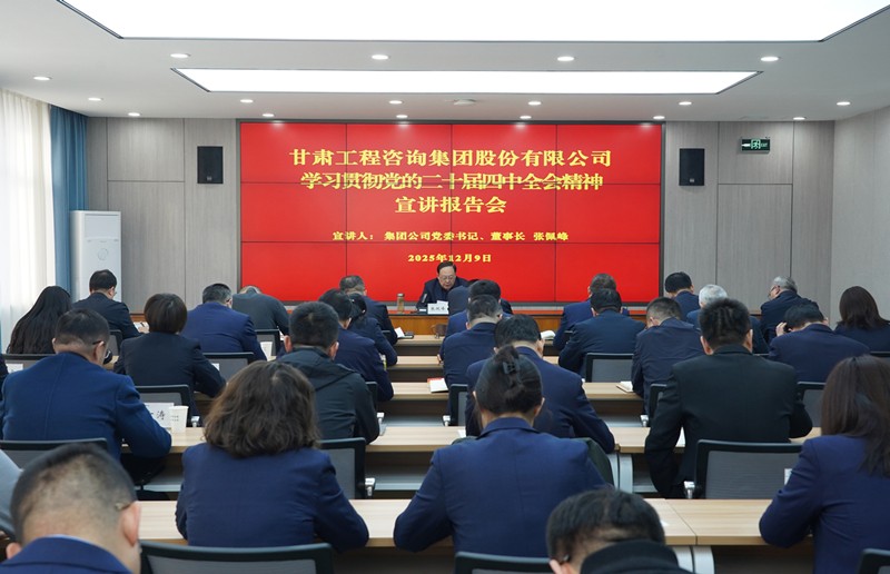 12月9日,甘肅工程咨詢集團召開學習貫徹黨的二十屆四中全會精神宣講報告會。集團公司黨委書記、董事長張佩峰作專題宣講報告,圍繞全會重大意義、核心要義及“十四五”發(fā)展成就、“十五五”時期目標任務等進行了系統(tǒng)闡釋,并結(jié)合集團實際提出貫徹落實的思路舉措。